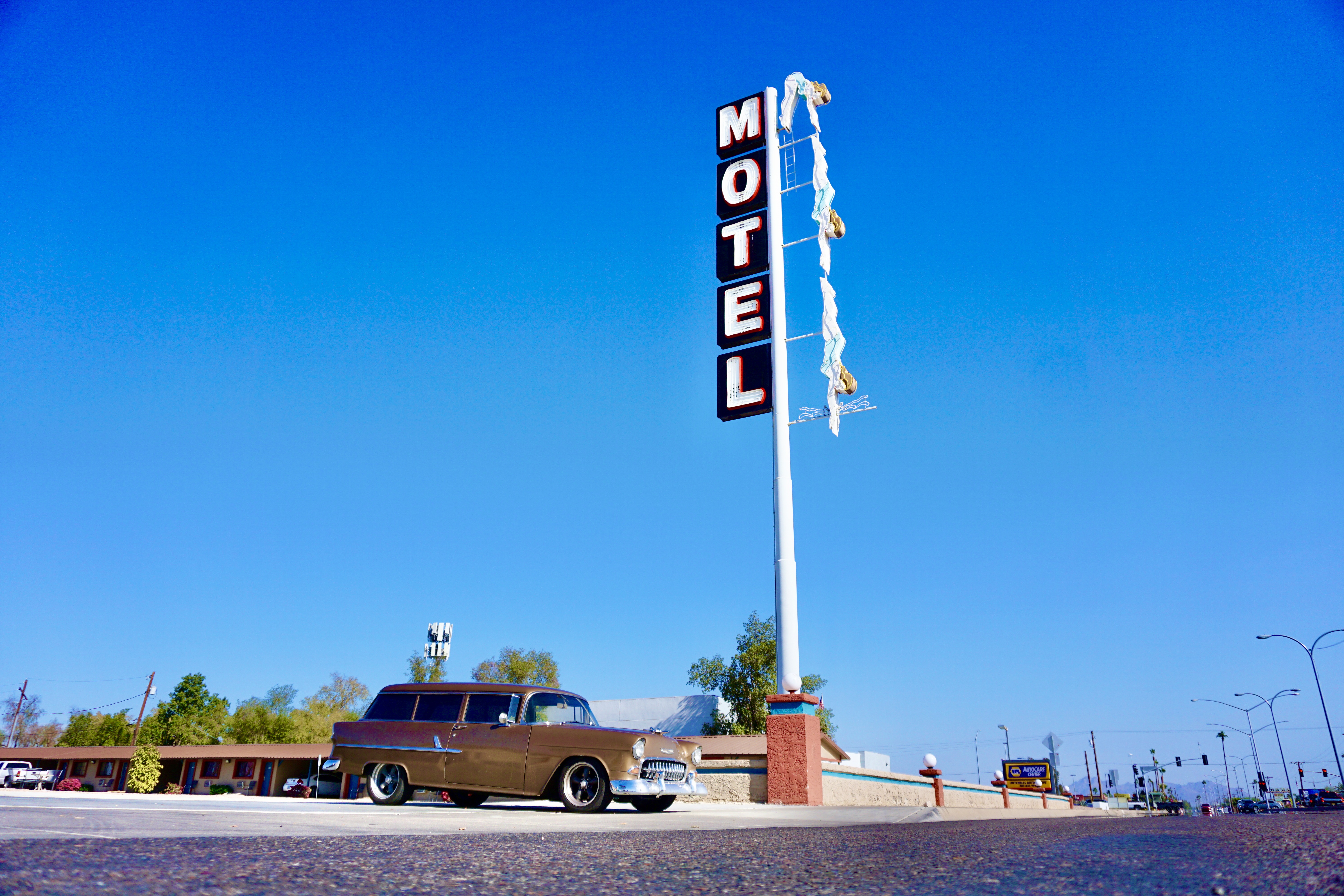 I drove across town to get the glory of the Courtesy Chevrolet sign.